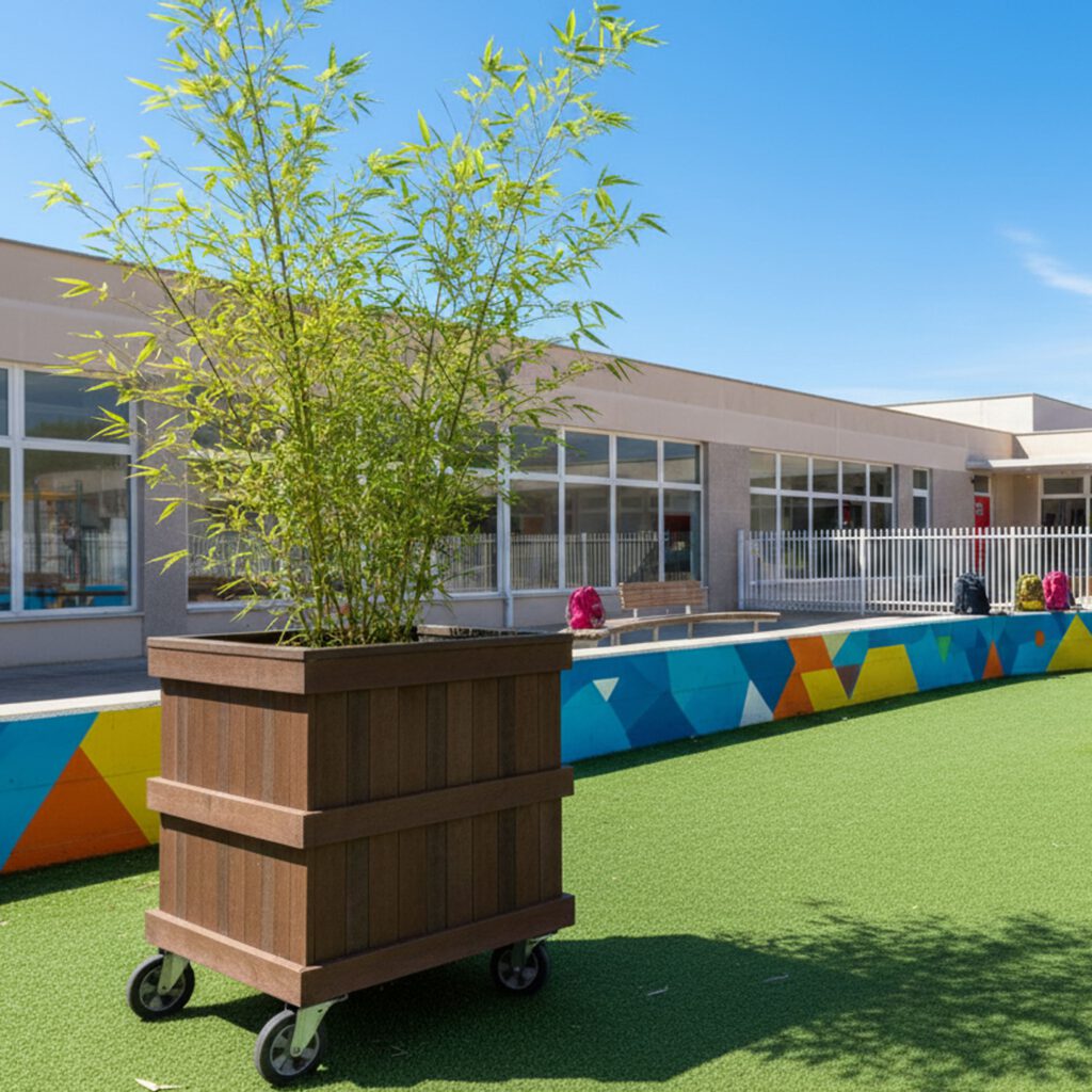 Imagínate este escenario: jardineras móviles llenas de exuberante vegetación de sombra, como bambú no invasivo, estratégicamente ubicadas en áreas donde la sombra es más necesaria. Estas jardineras, además de proveer sombra, también son flexibles y pueden moverse fácilmente gracias a su diseño con ruedas. Esto significa que incluso en áreas con superficies lisas, como en patios hormigonados, es posible crear zonas frescas y acogedoras.
