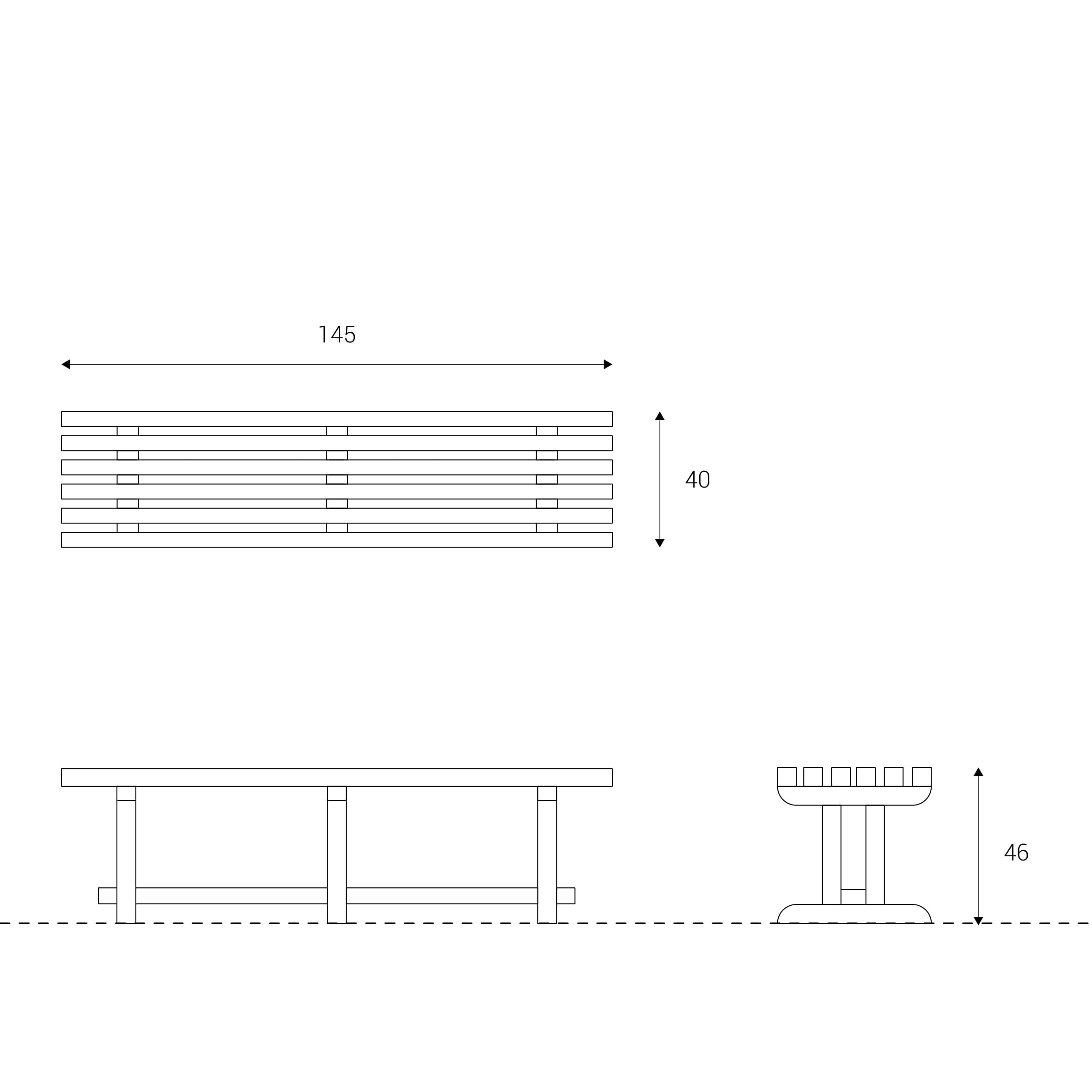 Banco fabricado con perfiles de plástico reciclado y reciclable, reutilizando plásticos de rechazo, no peligrosos, de origen urbano, industrial y agroganadero. Al estar fabricado con un monomaterial, es 100% reutilizable y reciclable, fomentando su circularidad.