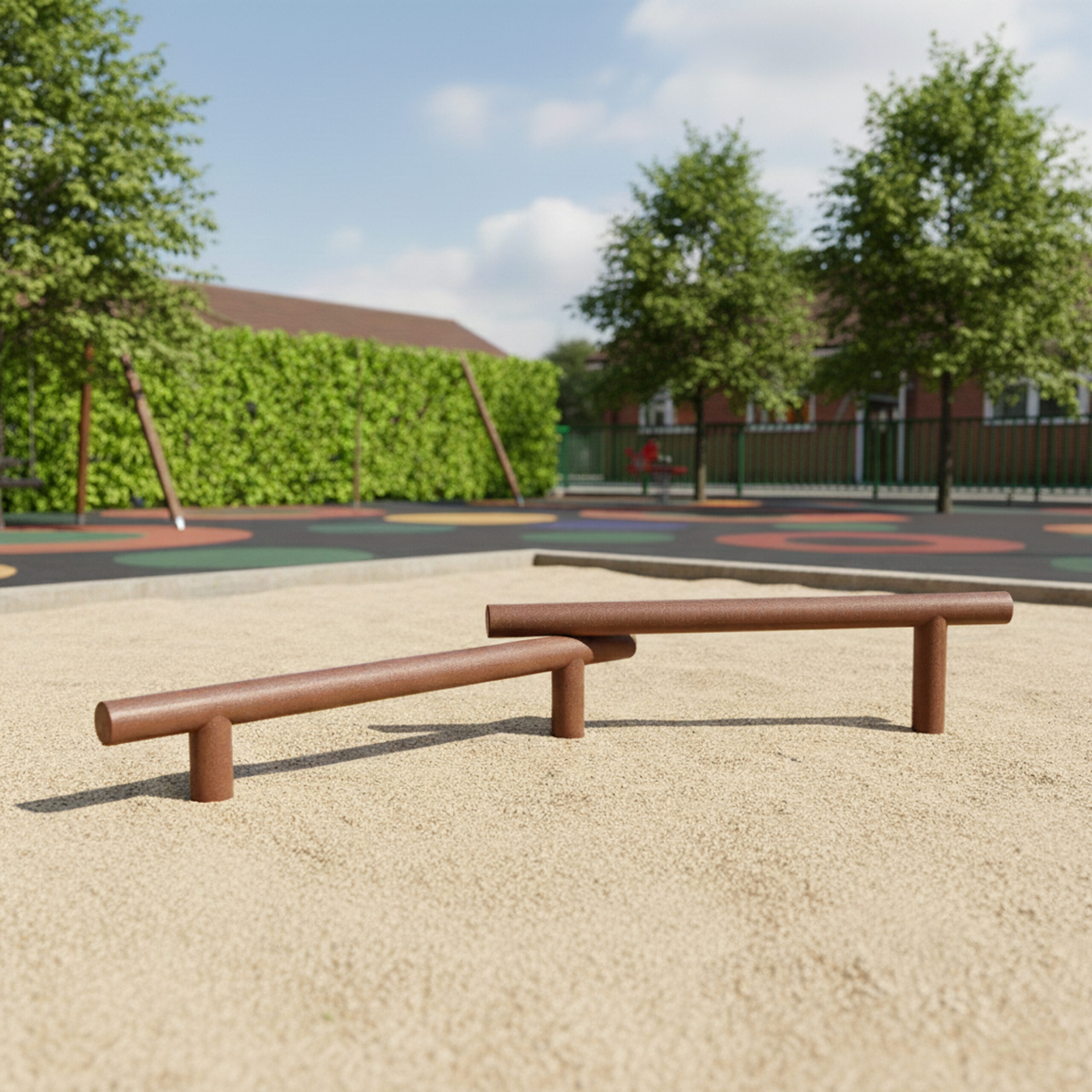 El Circuito de equilibrio permite a los niños y niñas aprender equilibrio y agilidad, controlando su cuerpo para mantener la estabilidad al moverse sobre los perfiles circulares a modo de troncos.